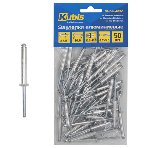 Заклепки алюмінієві (4.8 х 30 мм, 50 шт/уп) витяжні Kubis 01-04-4830